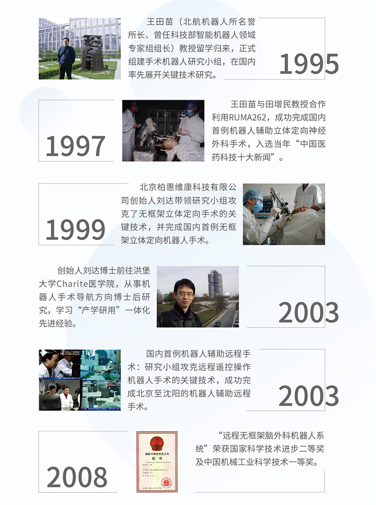 北京柏惠維康科技股份有限公司創立于2010年,是專業從事手術機器人研發、生產、運營的國家高新技術企業,國家專精特新“小巨人”企業、中國醫療裝備人工智能聯盟理事單位、中關村前沿科技與產業服務聯盟理事單位。