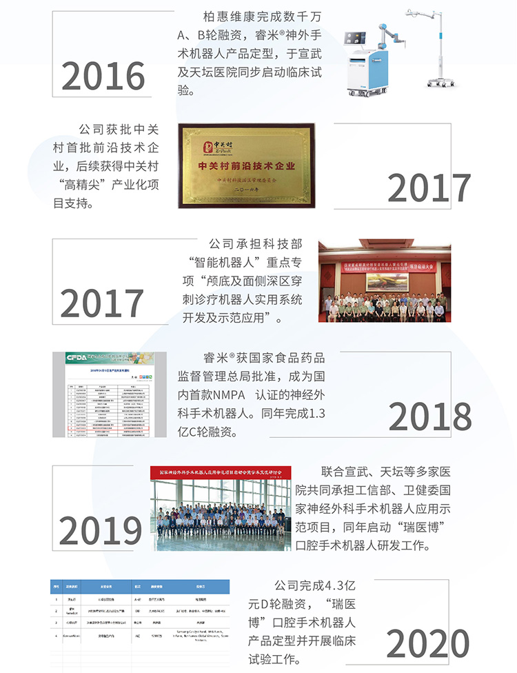 企業現擁有睿米神外手術機器人、瑞醫博口腔手術機器人兩大核心品牌,產品已應用于全國31個省份、直轄市。