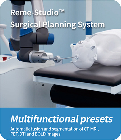 Q:What features does the Reme? surgical planninA:The surgical planning software can achieve multimodal image fusion including CT, MRI, PET, DTI, etc., multiple tissue segmentation, and advanced image processing functions to meet the various needs of neurosurgical image processing and surgical planning.