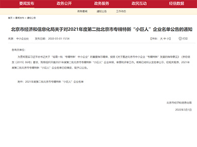 喜報 | 柏惠維康獲評北京市專精特新“小巨人”企業 -